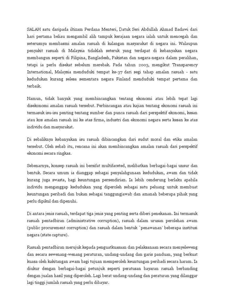22082020 Pada waktu yang sama rasuah akan menjathkan imej negara di mata dunia. Oleh itu kerajaan terpaksa berhutang untuk memastikan gaji penjawat awam dapat dinaikkan. Namun sistem ekonomi yang bergantung kepada industri hutang atau perbankan yang terus berkembang mengakibatkan rakyat terus sengsara.