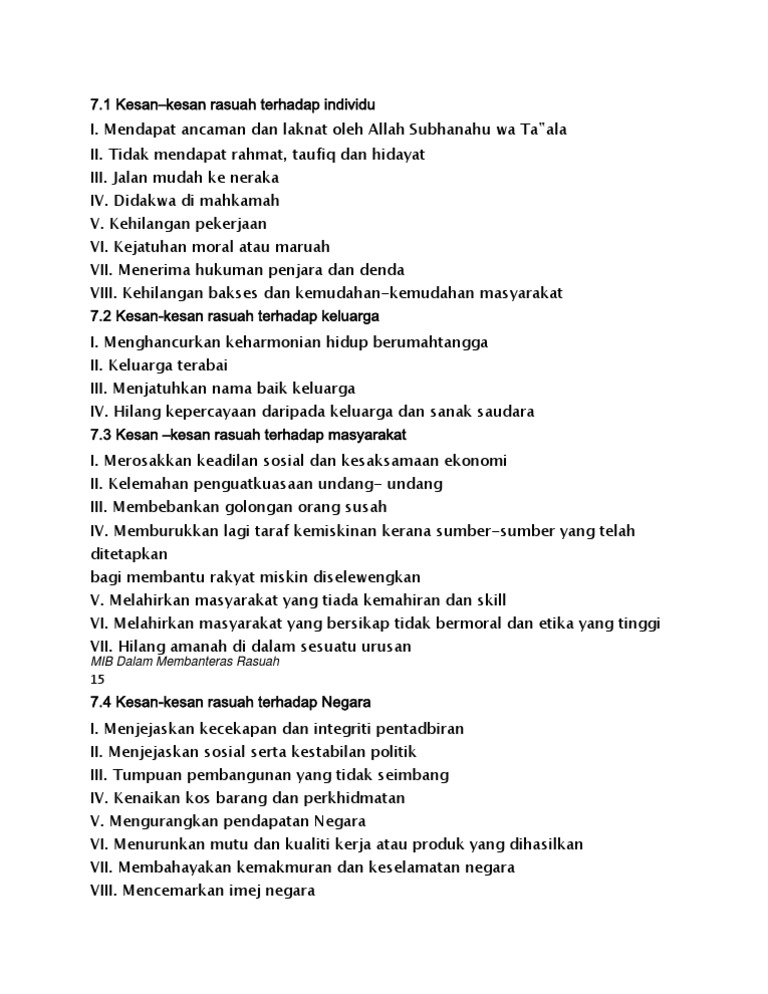 Punca Kesan Negatif Langkah Menangani Rasuah secara literalnya bermaksud sogokan atau secara konseptualnya bermaksud wang yang diberikan kepada pihak lain untuk menyembunyikan sesuatu perkara atau untuk mendapat sesuatu dengan mudah dan cepat tetapi salah di sisi undang-undang negara. Kesan Rasuah Salah Guna Kuasa Kepada Keselamatan Negara Laman Web Rasmi Agensi Anti Dadah Kebangsaan For more information and source see on this link. Definisi rasuah secara literalnya bermaksud sogokan.