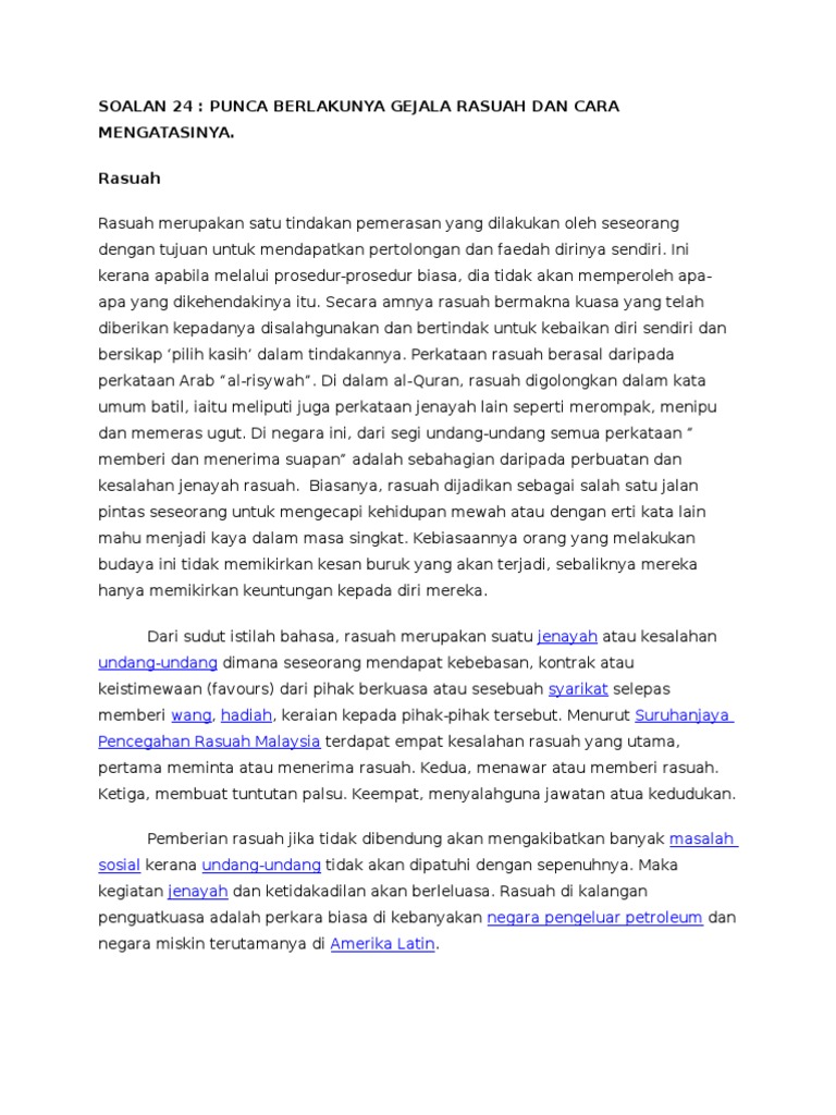 Contoh eseigejala rasuah - pengajian am stpm smk sultan Jul 20 2012 - CONTOH ESEIGEJALA RASUAH Sebagai contoh masyarakat majmuk di Malaysia sering mengamalkan tradisi memberi 1. PusatTuisyenAYU AYU AkademiYoutuberPUSAT TUISYEN AYU - PERCUMAPusat tuisyen PERCUMA pertama di Malaysia yang membawakan kepada anda guru-guru PAKAR dari. Memperkukuhkan dan membangunkan sistem sokongan sosial dan perkhidmatan sosial.
